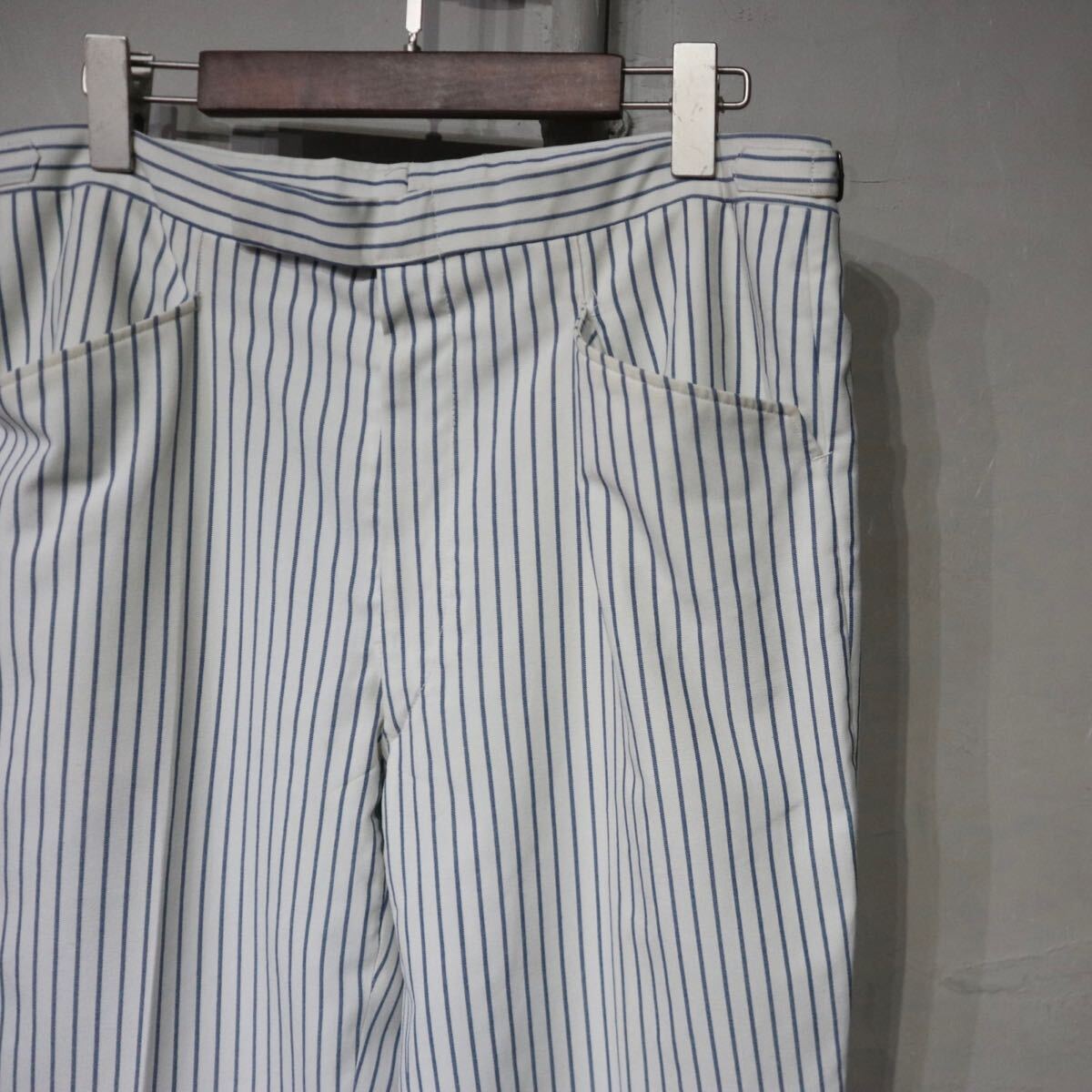- 【即決】70s サイドアジャスター ブルーストライプ スラックス パンツ ホワイト 白 青 オールド 古着
