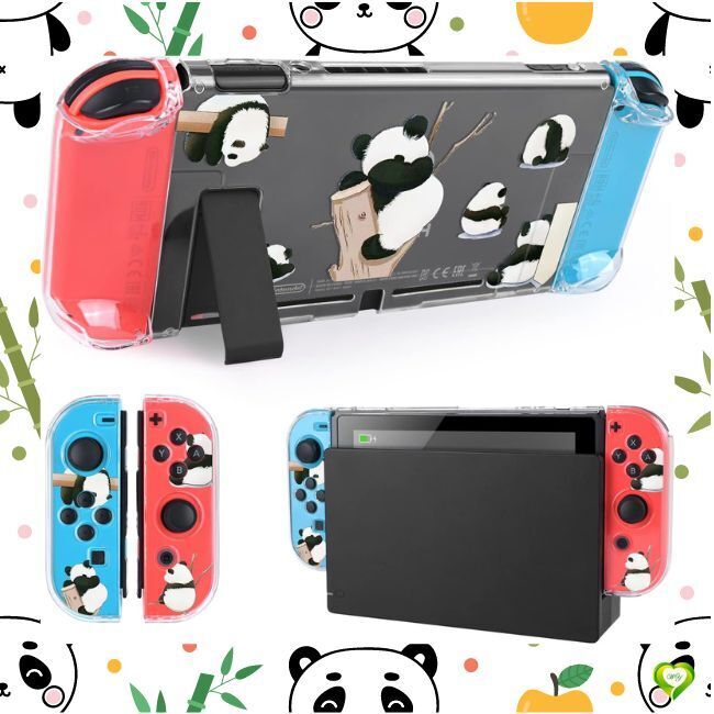 - 【パンダと一緒!癒やしと保護を】Switchケース 透明スイッチカバー ニンテンドースイッチカバー クリアケース 耐衝撃 着脱簡単 全面保護