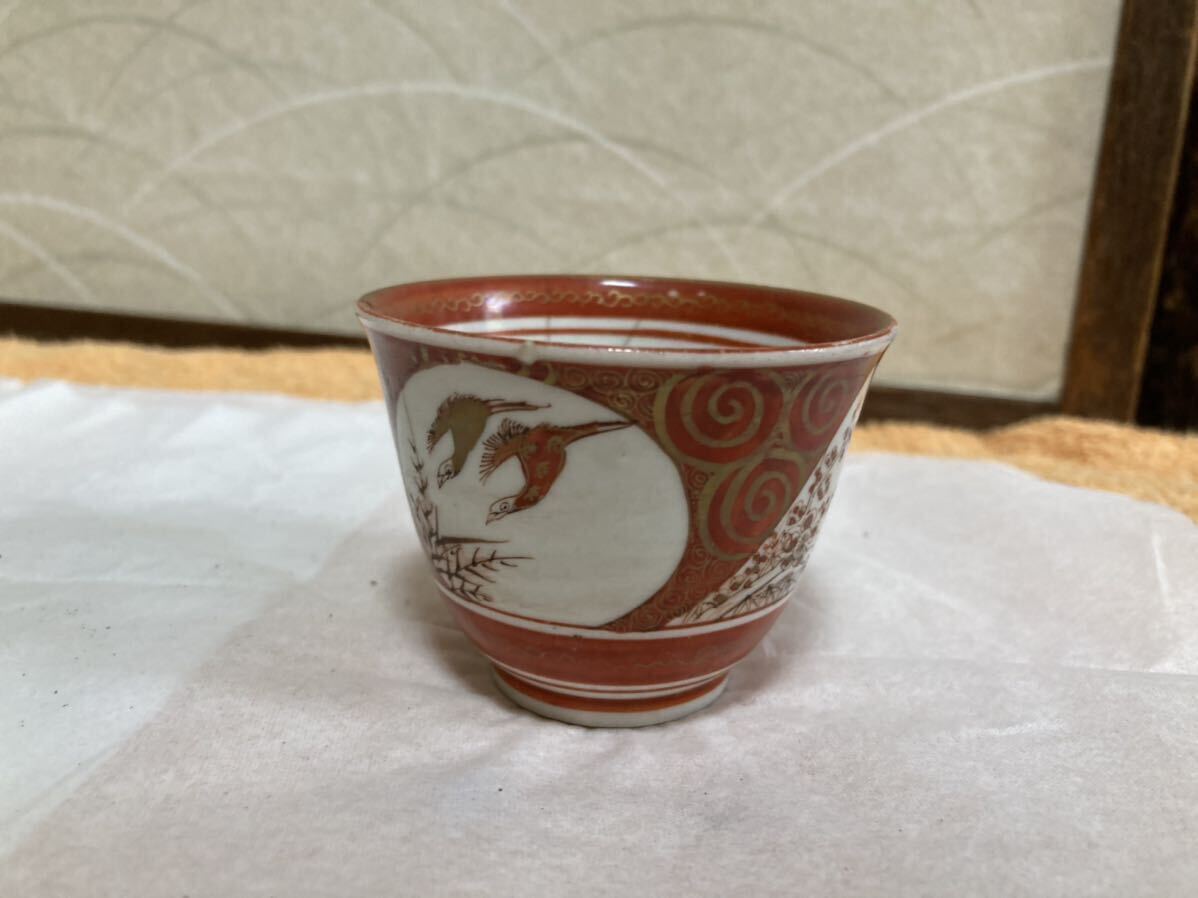 - アンティーク?骨董品?九谷焼 ?のぞき猪口?色絵?酒器 ?酒盃?湯呑み?ヒビ、汚れありです。
