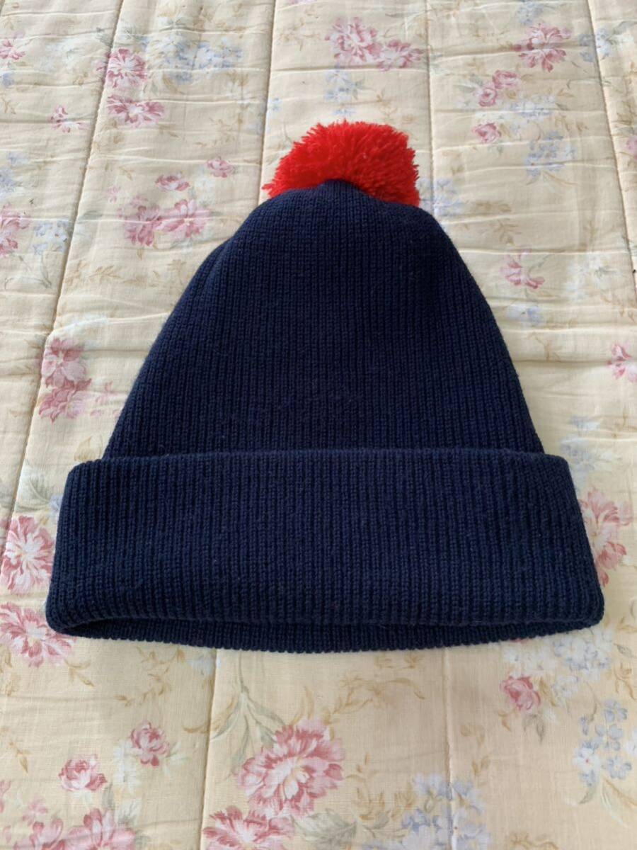 - 美品 ニット帽 アクリル 紺色 男女兼用
