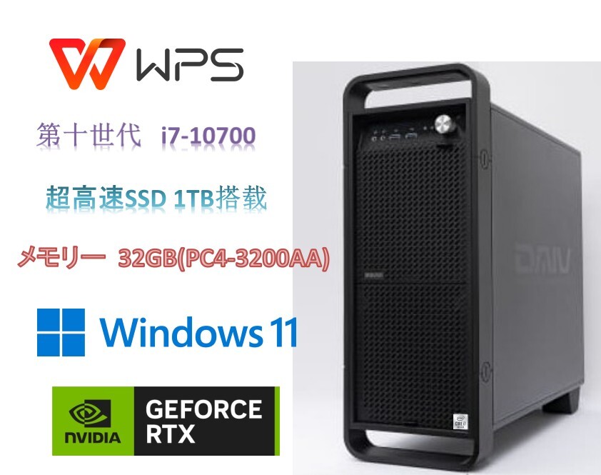 - D1423/マウスコンピューター/CPU i7-10700/RAM 32GB/SSD1TB/RTX2060SUPER/WIN11Pro/Office WPS