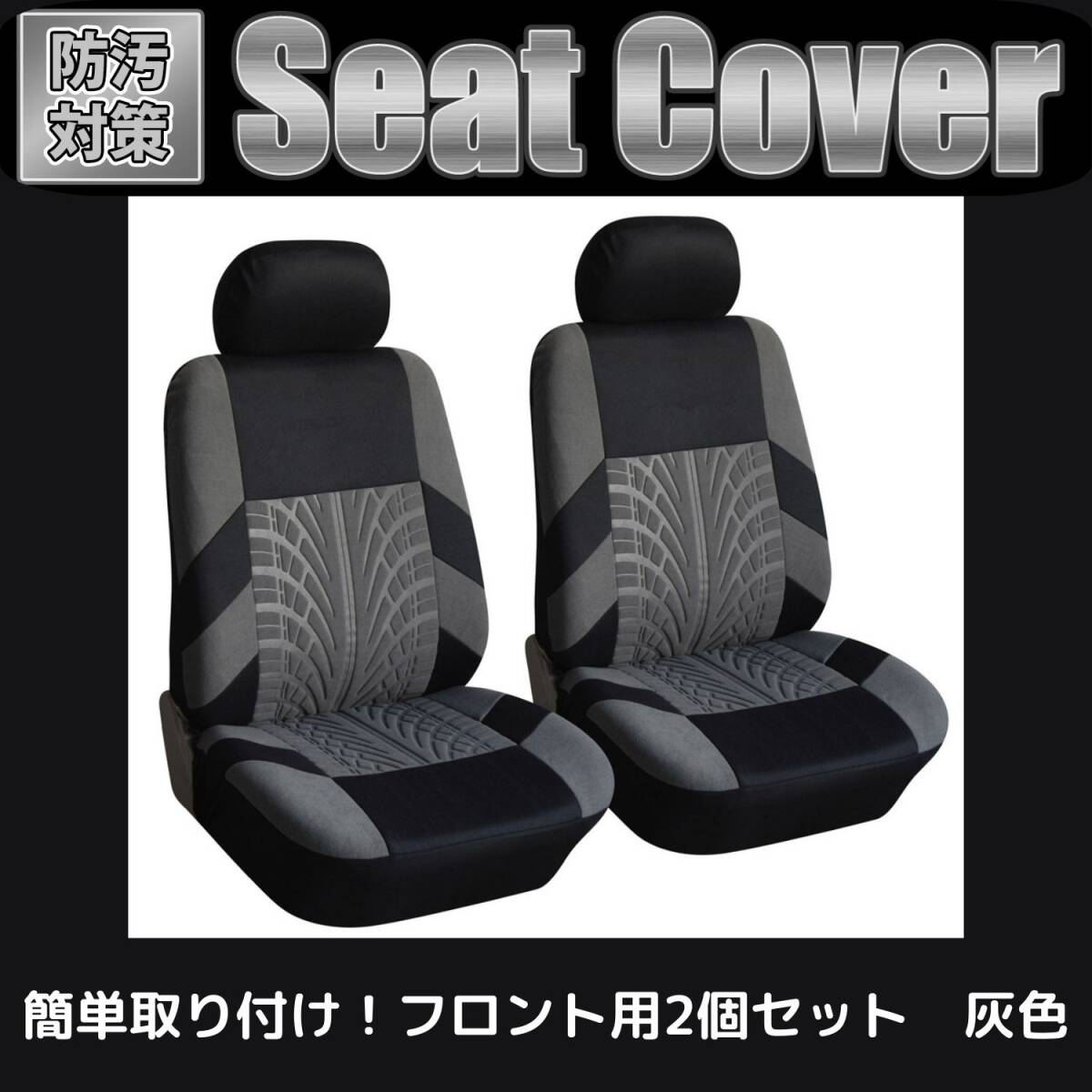 - シートカバー 車 カー 用品 フロント 汎用 通気 メッシュ スポンジ 伸縮 防汚 座席 普通車 軽自動車 運転席 助手席 2個セット 灰