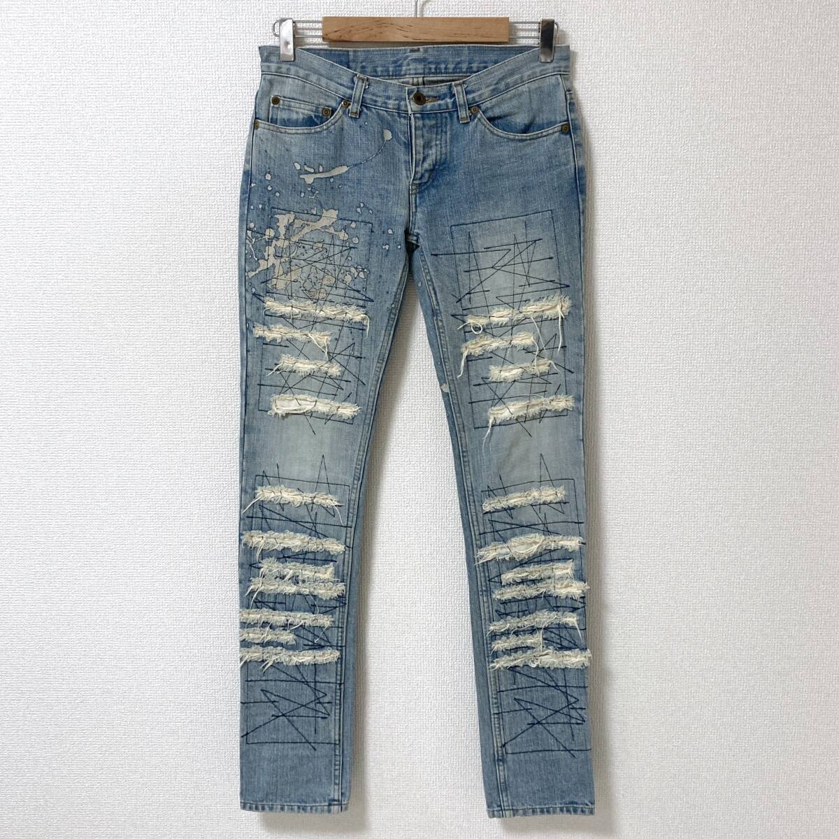 - 90s 00s HYSTERIC GLAMOUR ペンキ クラッシュ加工 スキニー デニムパンツ XSサイズ ヒステリックグラマー スリム VINTAGE archive 4080565