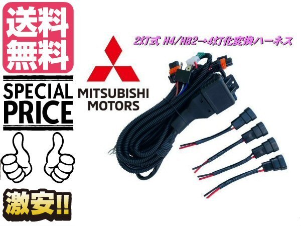 > ハイビーム 全灯化 リレー H4 ヘッドライト 2灯式 → 4灯式 変換 ハーネス HID LED ハロゲン 4灯化 三菱 送料無料/6