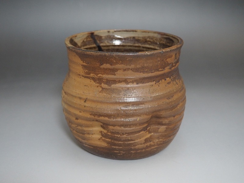 - A3227 時代物 えくぼ 花器 ☆ 詳細不明 旧家蔵出 古い 古玩 骨董 古美術 茶道具 茶器 建水 こぼし 華道具 花道具 花瓶 花入 壷 壺 器 陶器