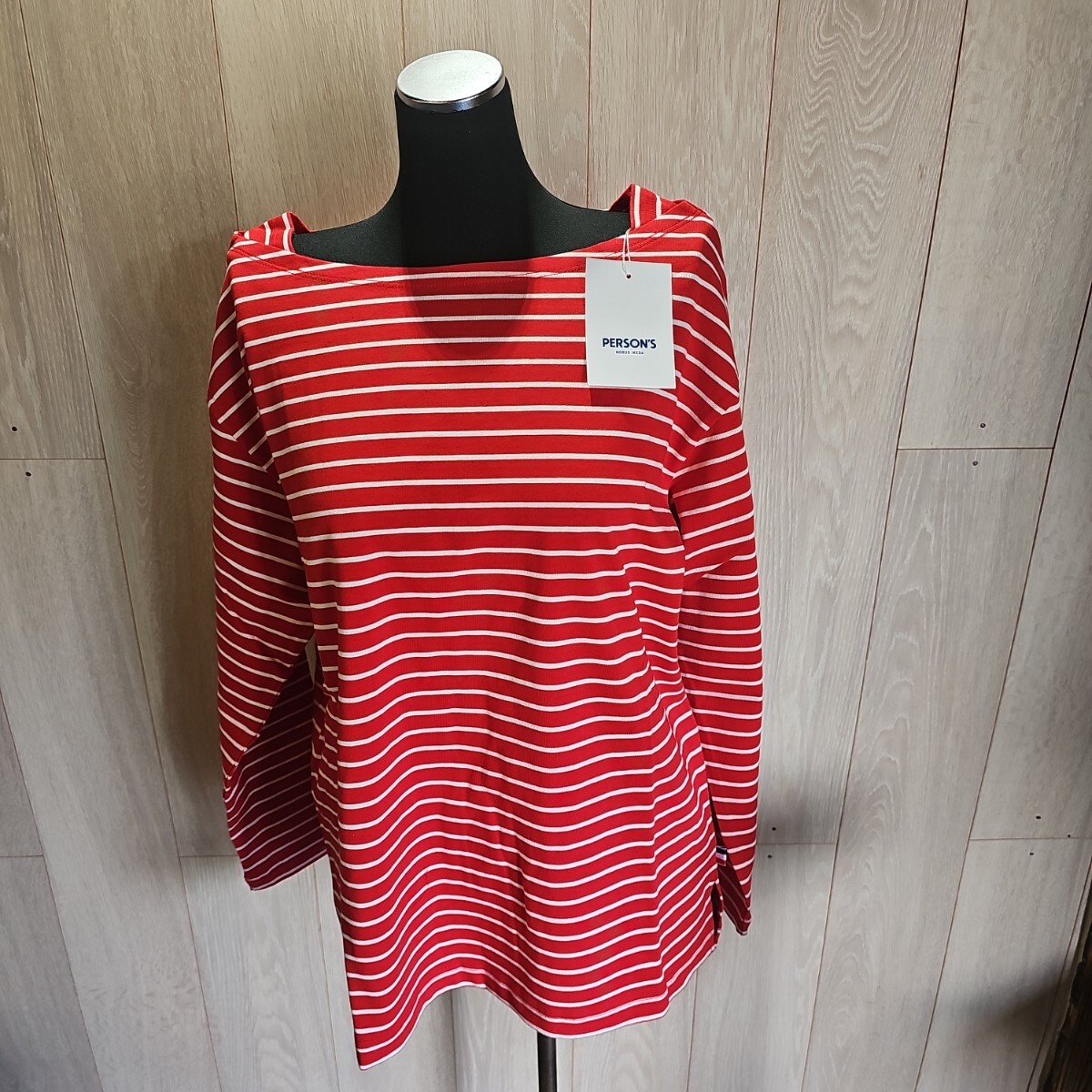 - 未使用タグ付き PERSONS ボートネック ボーダーTシャツ★レッド QVC