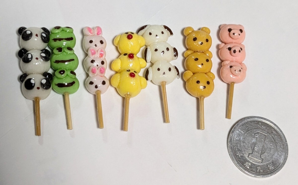 > ミニチュア★動物おだんご★お団子★7種類セット★アニマルマシュマロ★パンダ・ウサギ・ヒヨコ・カエル・ブタ・クマ・犬★ドールハウス★