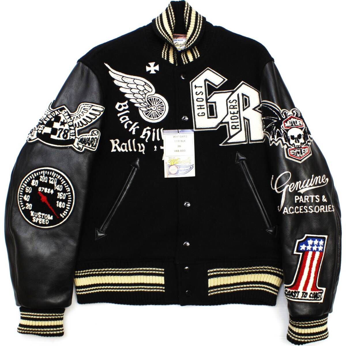 - YA83東洋36(S)アワードジャケット 袖革 バイカー モーターサイクル ゴーストライダー ジャンパー スタジャン ホワイツビルWHITESVILLE色黒