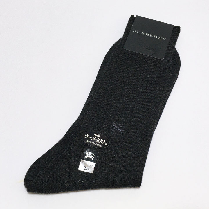> バーバリー / BURBERRY 靴下/ソックス メンズ ビジネス ウール100% チャコールグレー 25cm ホースマーク刺繍 日本製【6210】