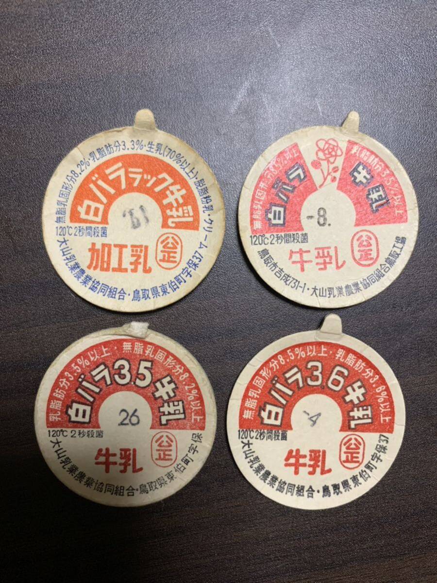 - ① 牛乳キャップ 4点 白バラ牛乳 白バララック牛乳 牛乳蓋