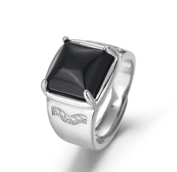 - メンズ 指輪 フォークリング 黒×シルバー オープンリング アクセサリー ゴツい サイズ調整