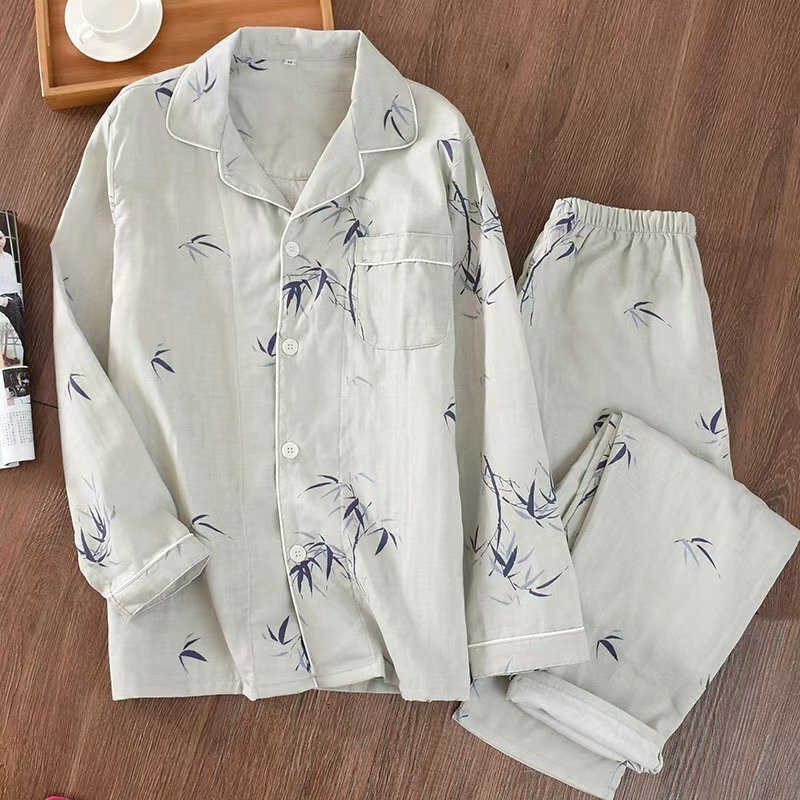 > LRM4297★レディース M~XLサイズ 春秋 薄手コットン 2層ガーゼ 素材 綿 柔らか肌さわり 通気 パジャマ 部屋着 ルムウエア 心地良い
