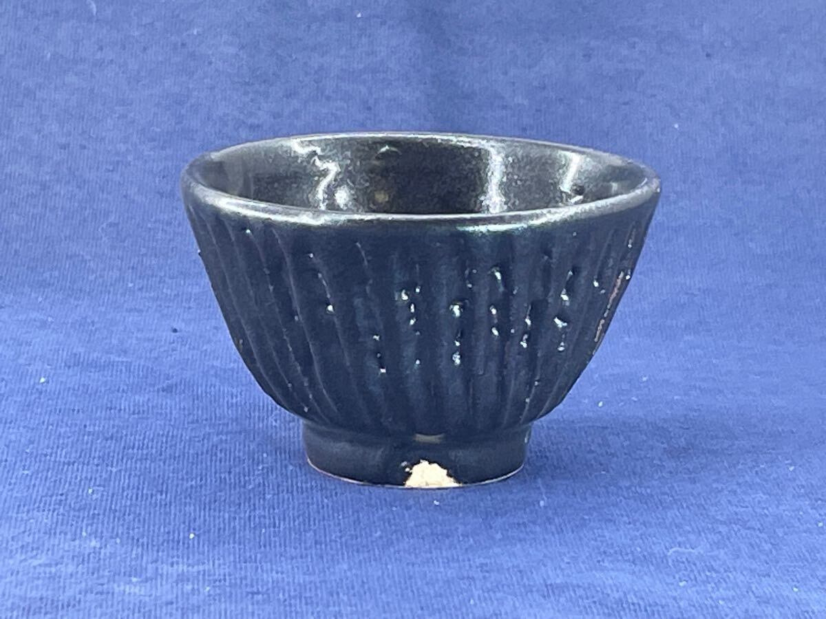 - ◇唐津焼 ぐい呑 黒唐津 しのぎ酒盃 C-11