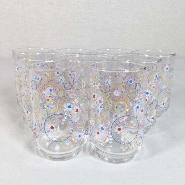 - 【美品/9点セット】昭和レトロ 花柄 グラス コップ 硝子製 ガラス