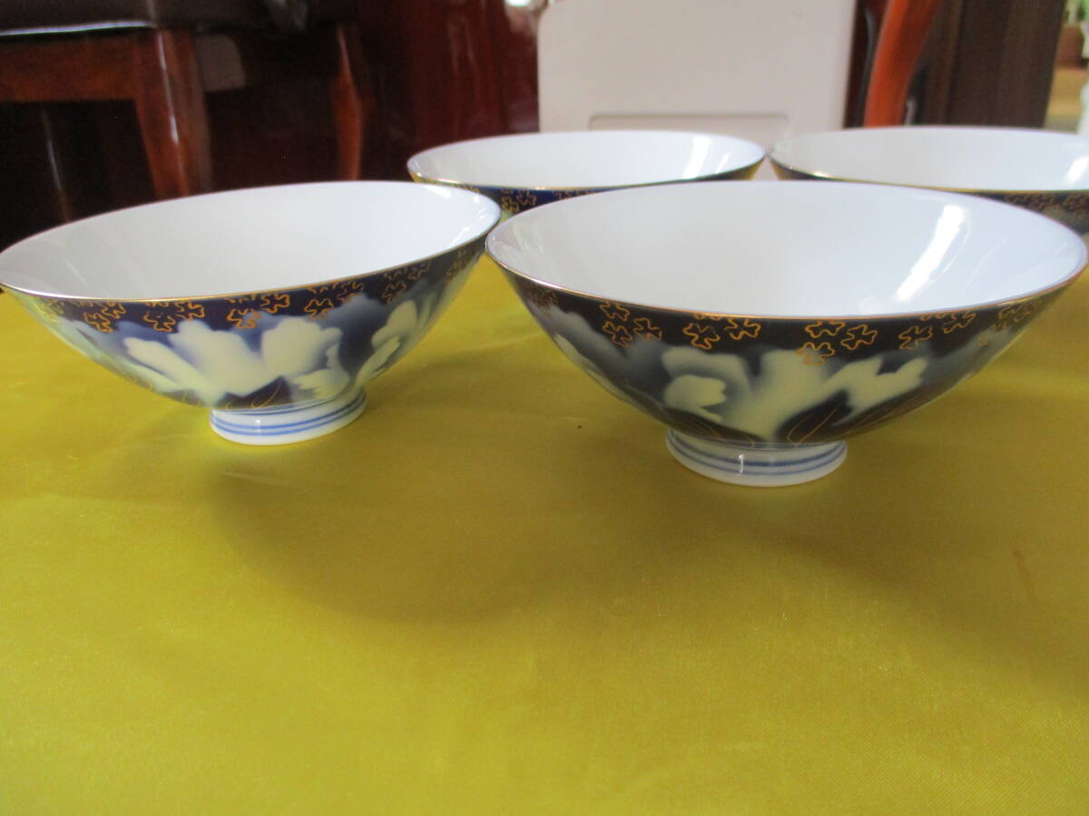 - 深川製磁 宮内庁御用達 牡丹金ミル 茶碗4客 直径12 高さ5