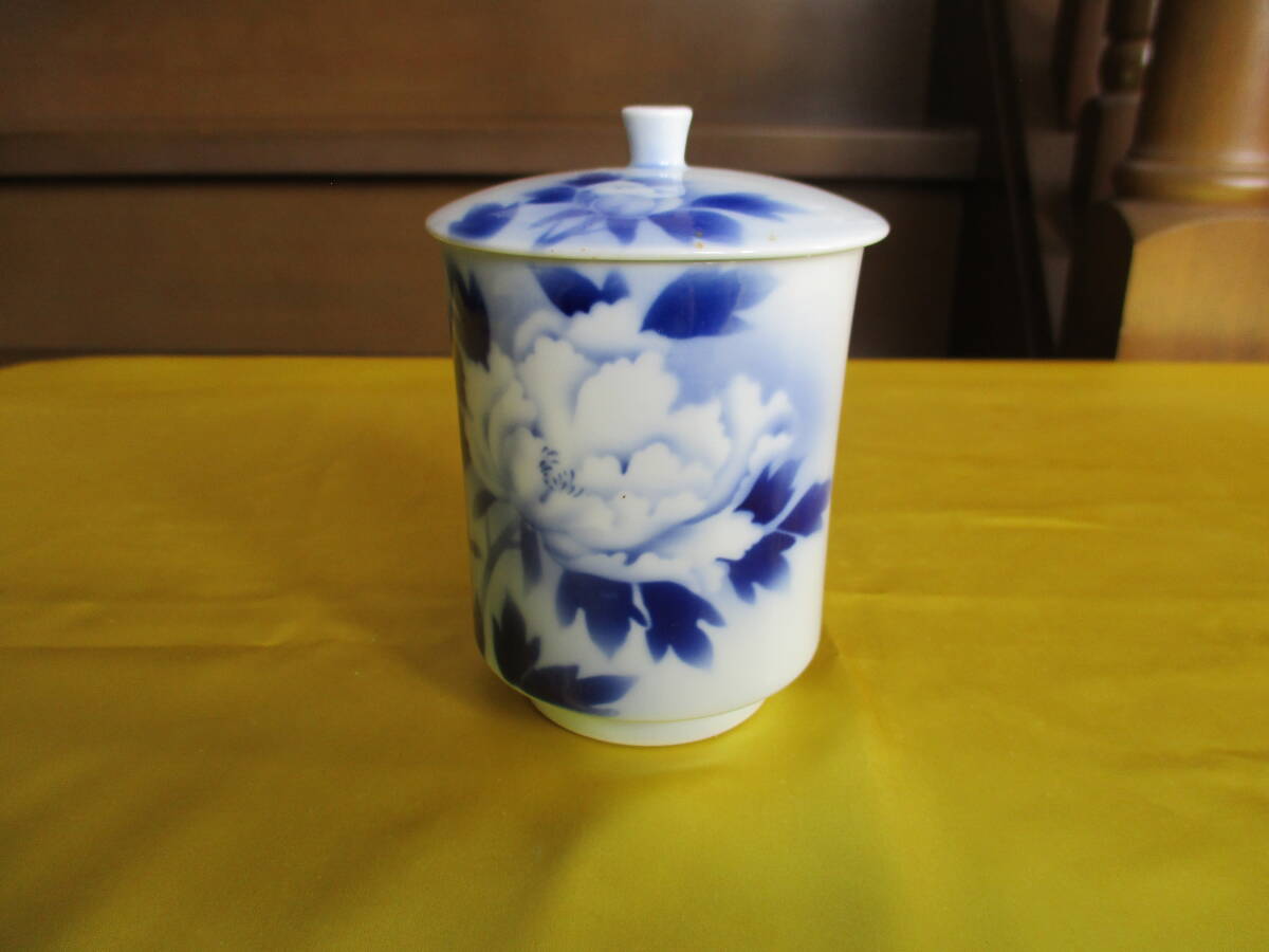 - 深川製磁 宮内庁御用達 希少!牡丹湯呑 直径7.5Cm 高さ9.3Cm 蓋直径8Cm 蓋込高さ11Cm