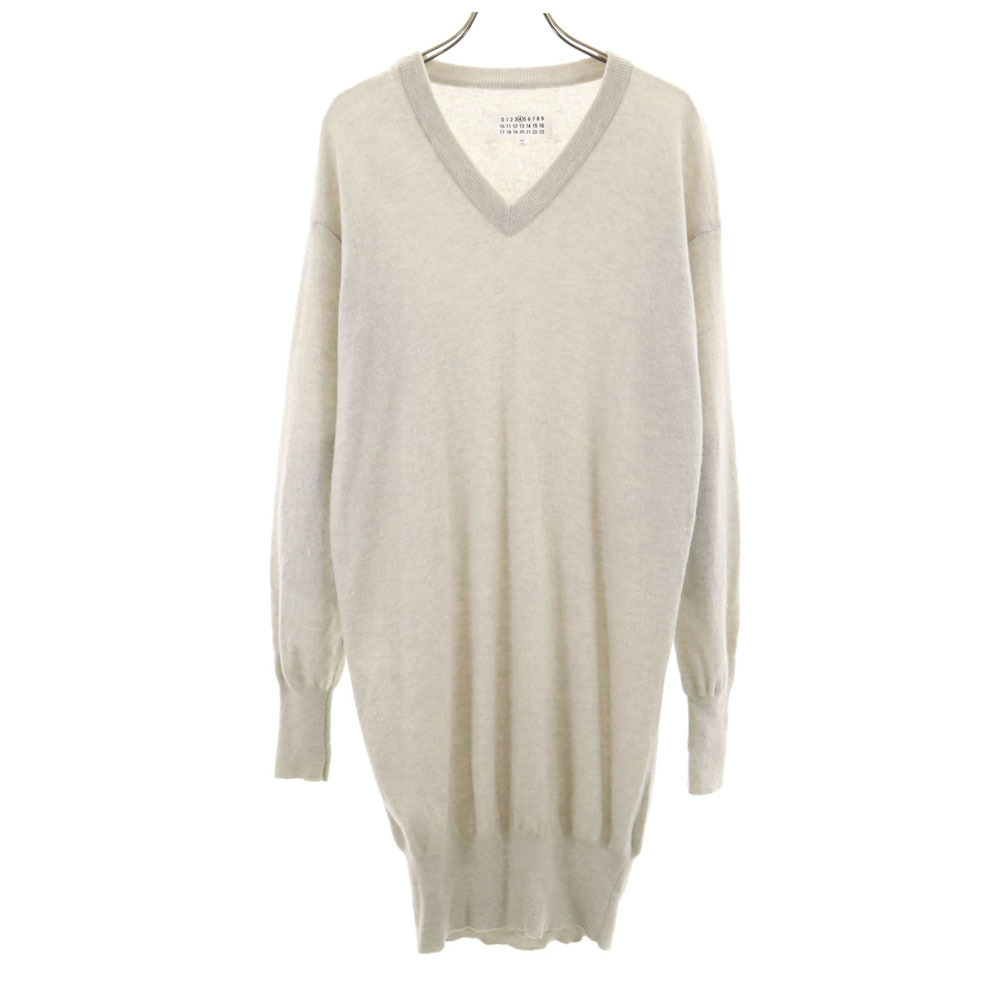 > メゾンマルジェラ イタリア製 長袖 Vネック ニット ワンピース S ライトグレー Maison Margiela レディース