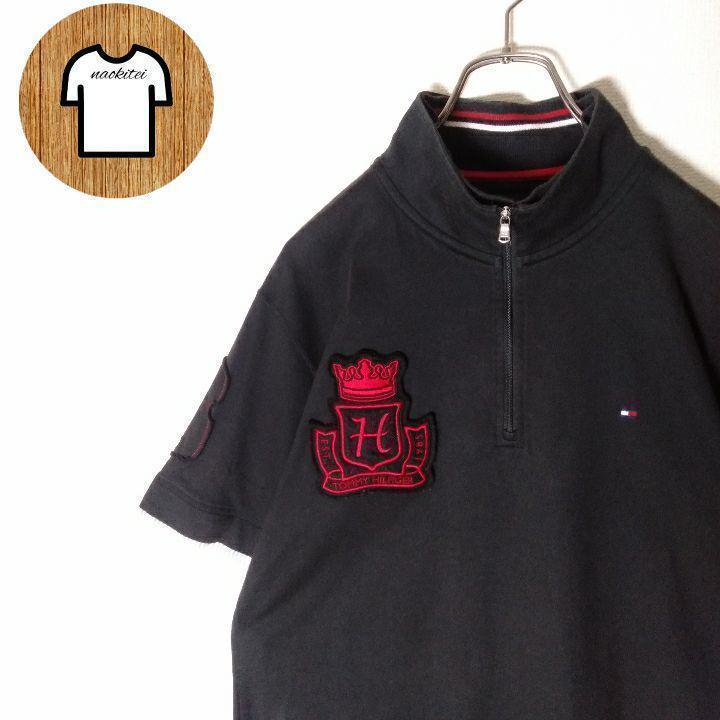 - TOMMYHILFIGER ハーフジップポロシャツ S レイヤード 刺繍ロゴ A311