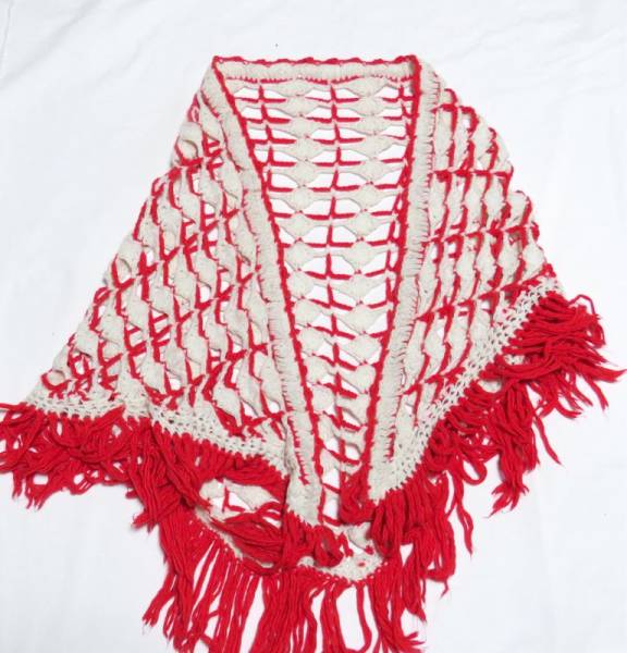- USA70’ヴィンテイージ手編みヒッピー三角ストール白赤8