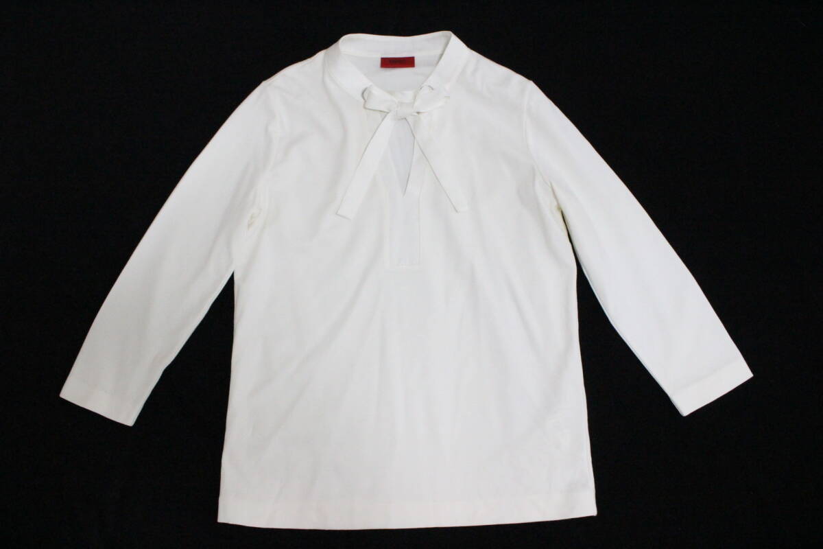 - F151 美品 HUGO HUGO BOSS ヒューゴボス ボス リボン カットソー プルオーバー 白 ホワイト XSサイズ レディース