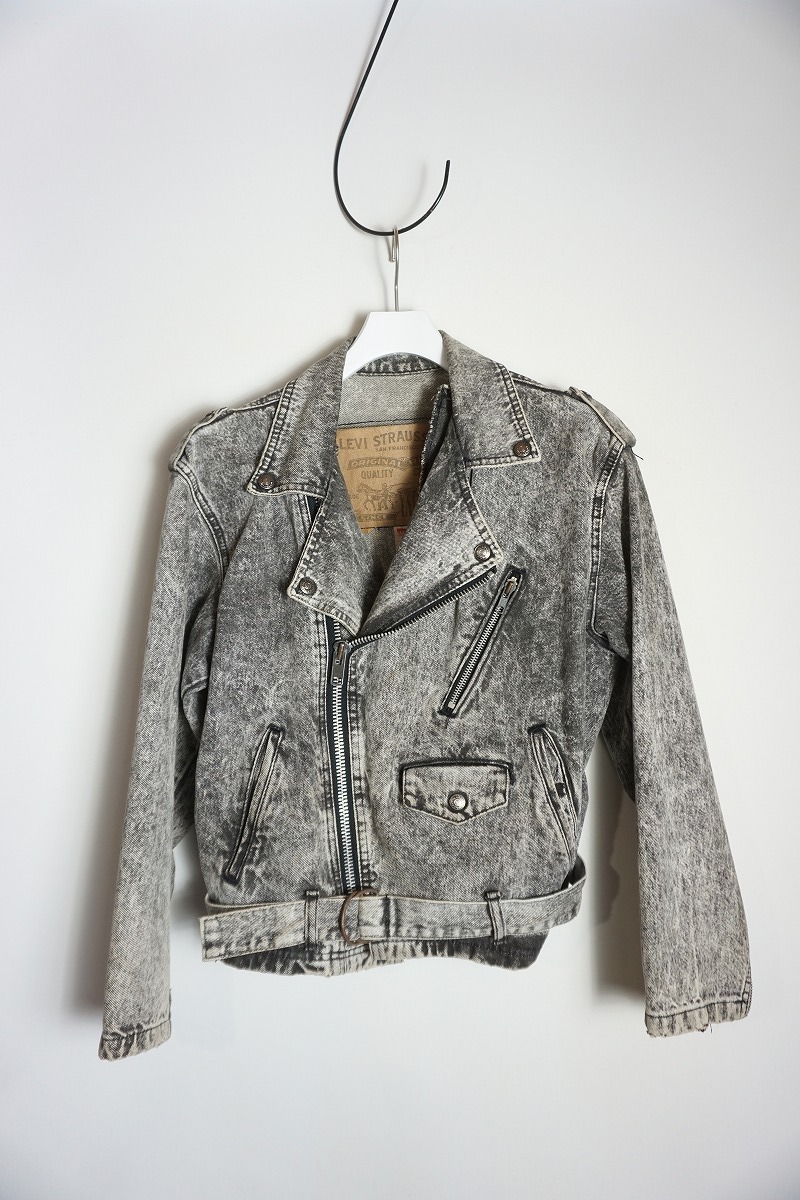 > 希少 80s Levi's リーバイス ブラック デニム ライダース ジャケット ケミカルウォッシュ スパンコール 57538 USA製 L黒505O▲