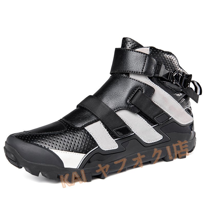 - ☆新品バイク靴 メンズ ライディングブーツ 厚底 サイクリングシューズ ハイカット ライディングスニーカー 強化防衛性 ブラック