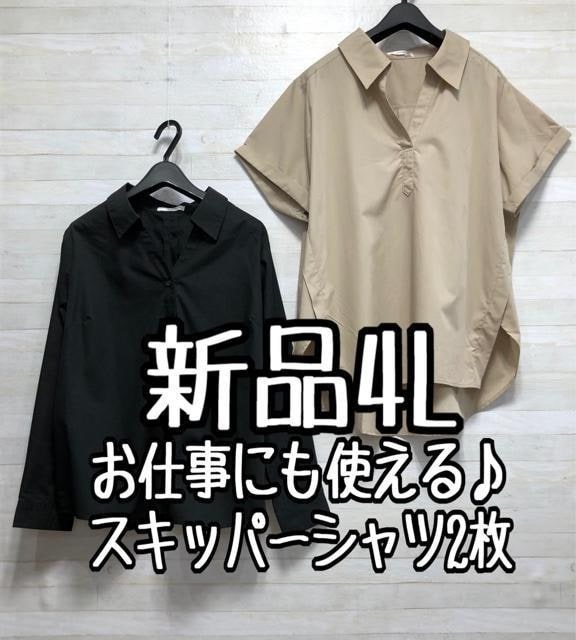 - 新品☆4L♪お仕事にも♪スキッパーシャツ2枚セット♪半袖&長袖☆f447