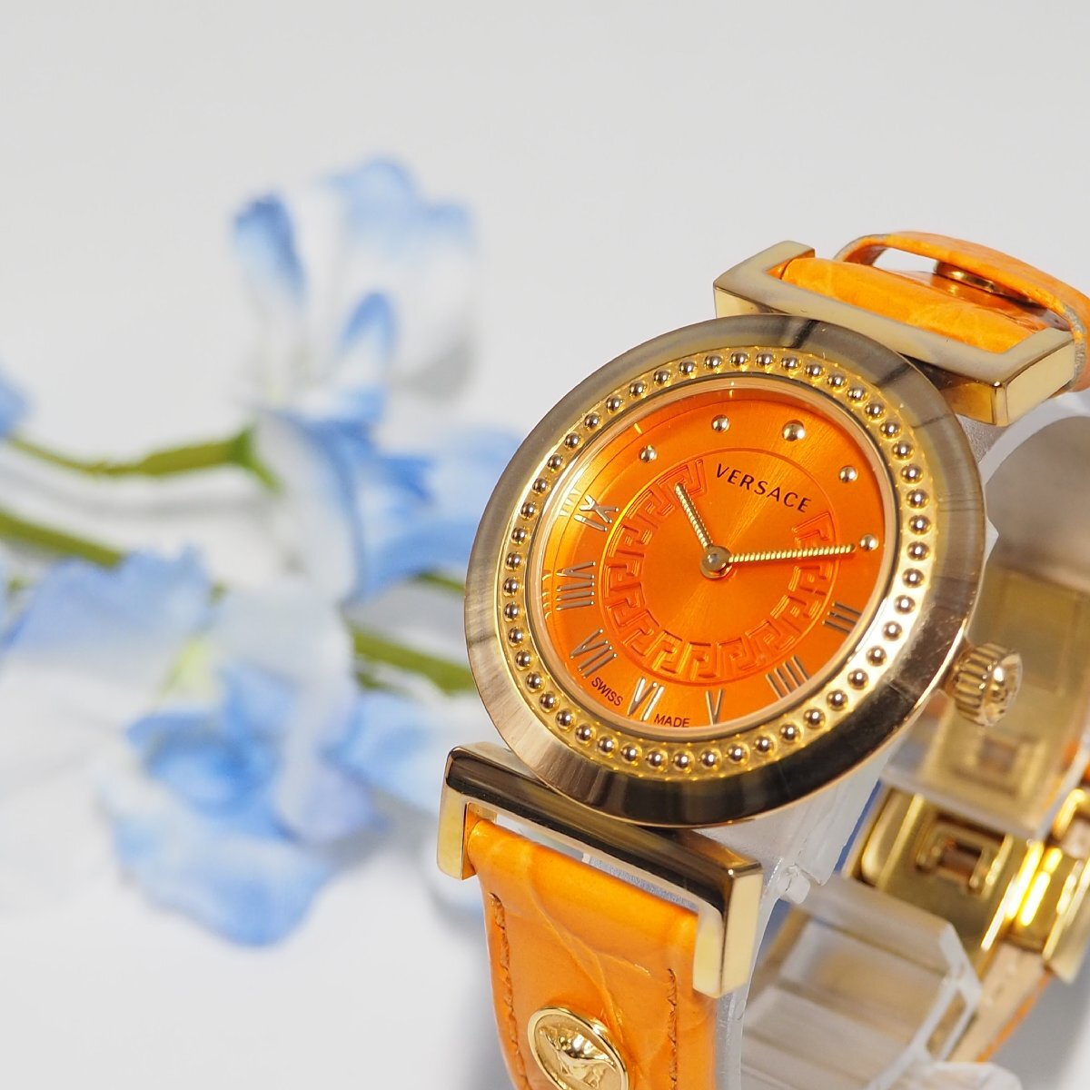 ★★★★ ヴェルサーチ VERSACE 革ベルト メデューサ メンズ 腕時計 ゴールド F188 中古★★★★