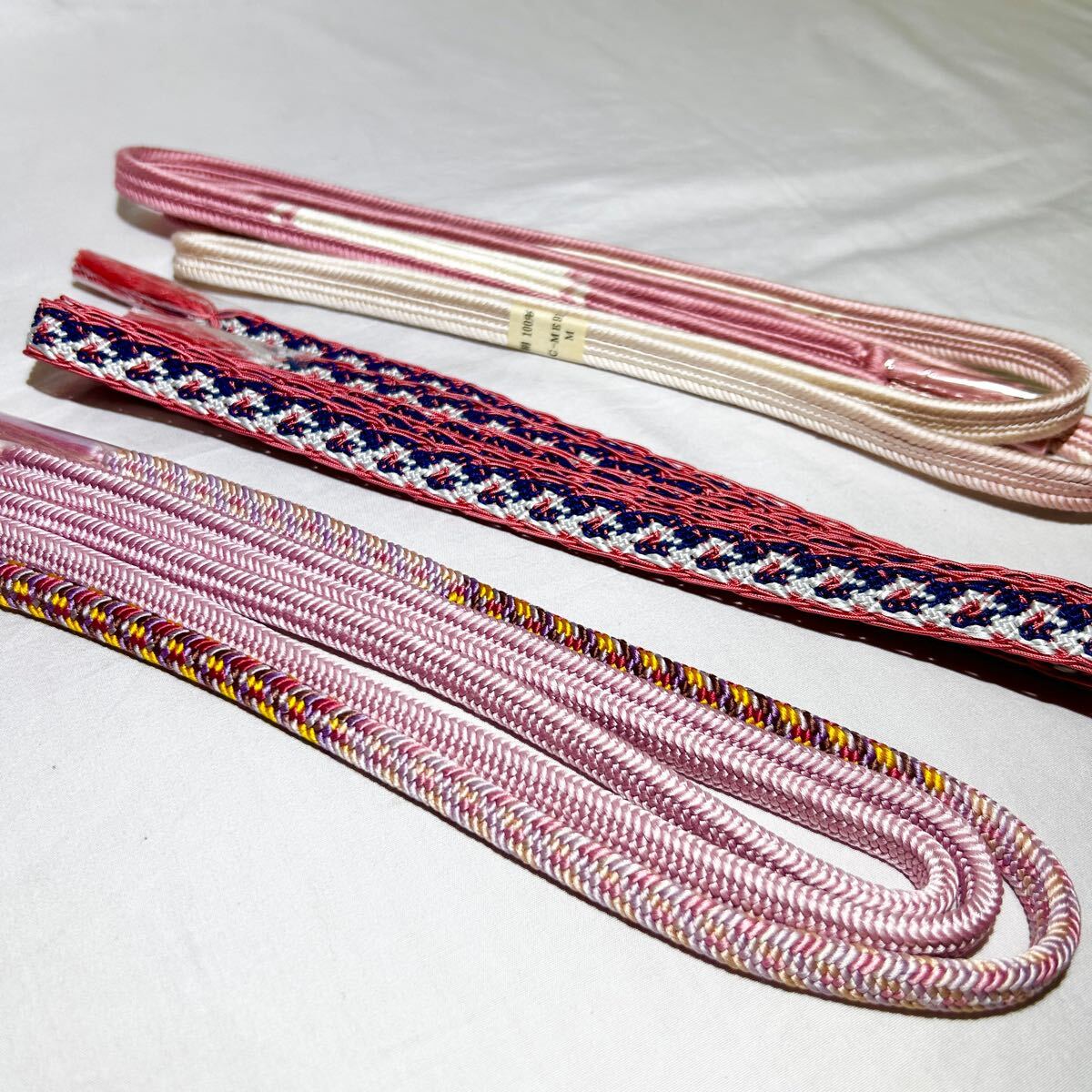 - ★美品★ 帯締め 3本セット 紐 ピンク系 帯紐 レディース 帯〆 普段着 着物 レース 可愛い 冠組 和装小物 リメイク 手芸 遊び (10206①C