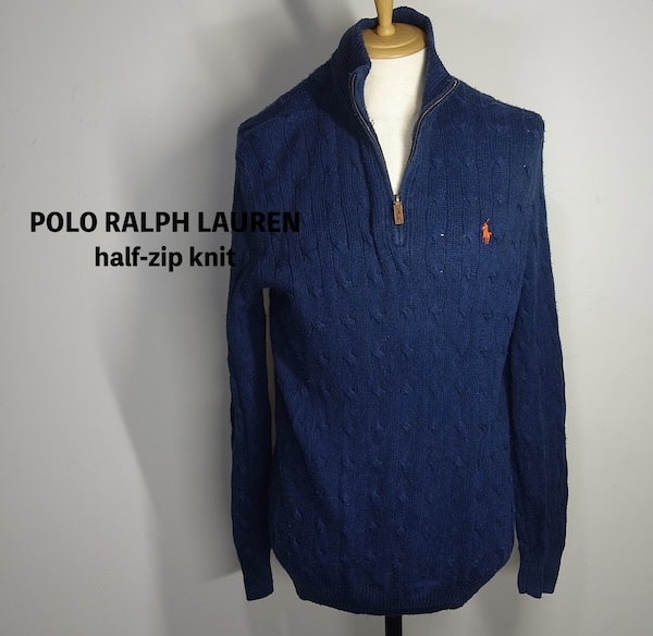 - TK ラルフローレン 絹 シルク ハーフジップ ケーブルニット セーター 紺 ネイビー