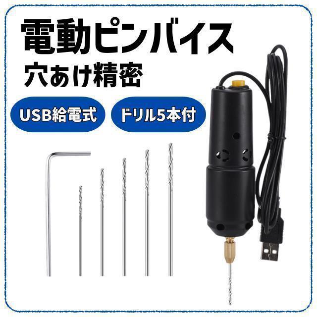 - ピンバイス 電動 穴あけドリル USB式 ハンドメイド アクセサリー 5本セット