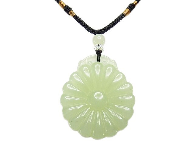 - 菊花紋彫りネフライト軟玉ヒスイ天然石ペンダントネックレス石街プライム