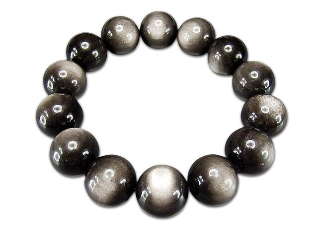 - 発色極上シルバーオブシディアン約16mm天然石数珠ブレスレット迫力満点プライム
