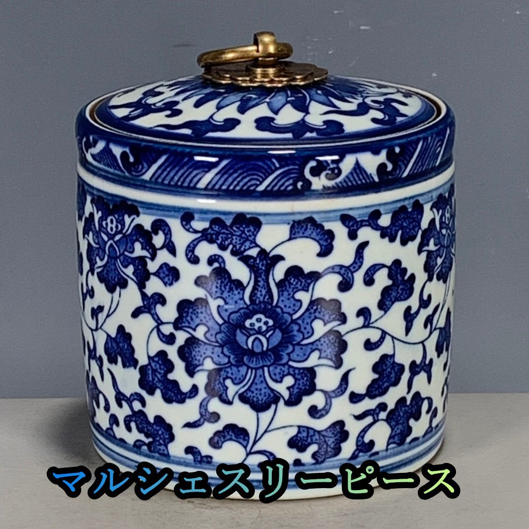 - 超美品! 青花 絡枝 花卉 蓋缶 清 乾隆賞缶 装飾 磁器 中国陶磁 中国美術 コレクション