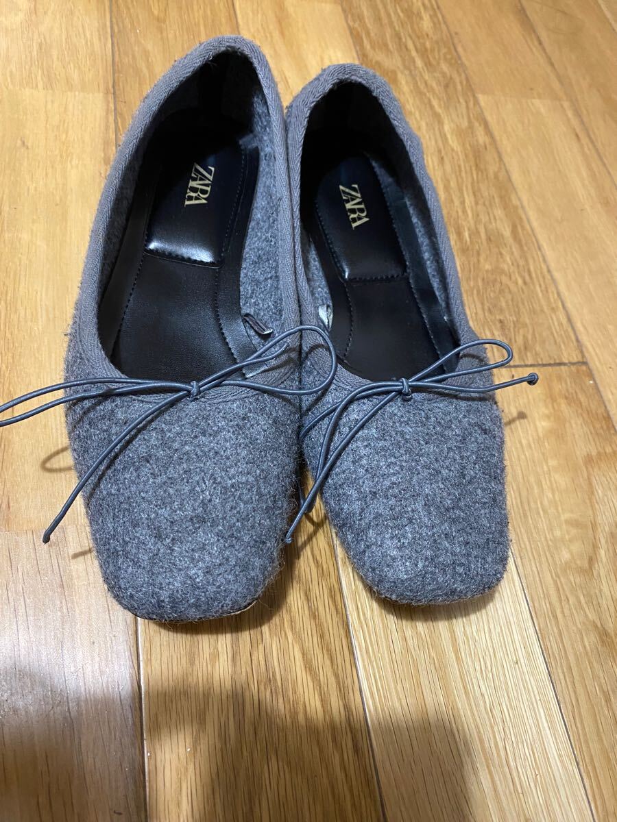 - ZARA フェルトバレエシューズ フラットシューズ 37 グレー