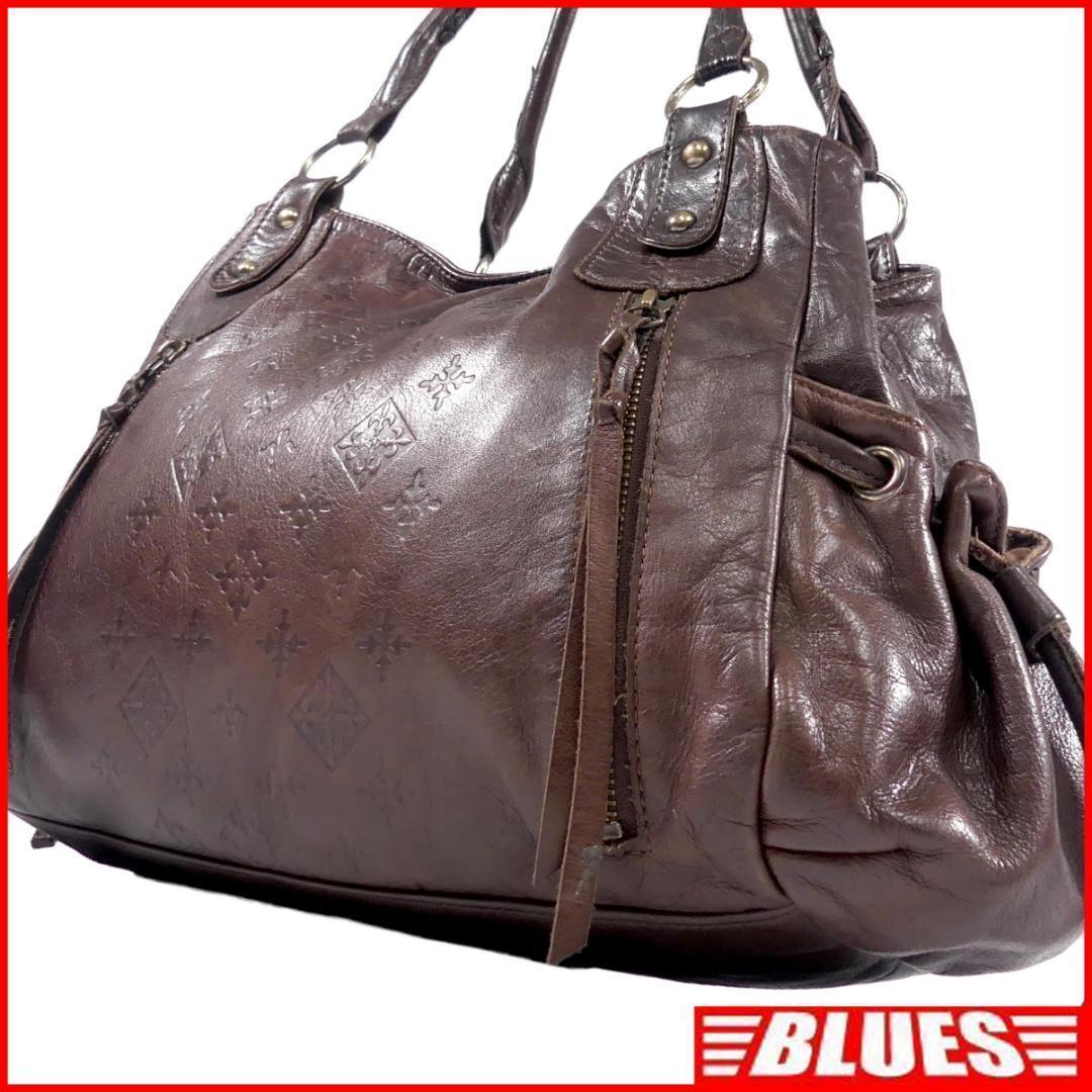 - 即決★russet MESTER★オールレザーボストンバッグ ラシット 茶 モノグラム型押し 本革 トラベルバッグ 本皮 肩掛け ショルダーバッグ 旅行