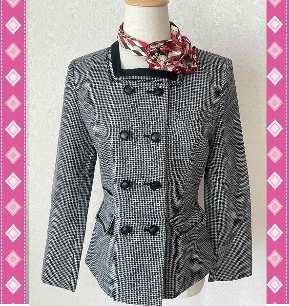 - ※Bランク※【中古】IWATAYA_S-2サイズ_長袖/(リボン付き)ノーカラージャケット/岩田屋三越/かわいいOL会社制服/おしゃれ事務服
