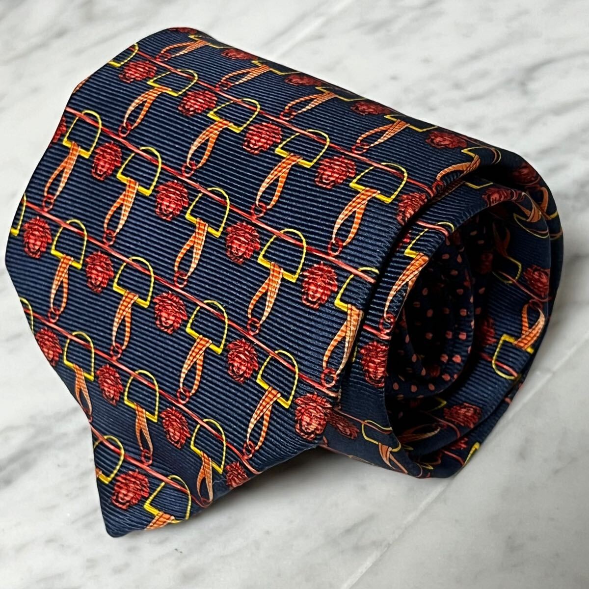 - 770円~ VERSACE ネクタイ ネイビー レッド メデューサ 総柄 (B9)