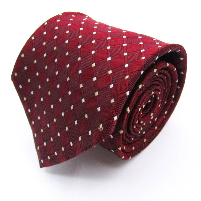 > ダナキャラン ブランド ネクタイ チェック柄 格子柄 ドット シルク 日本製 PO メンズ ワインレッド Donna Karan