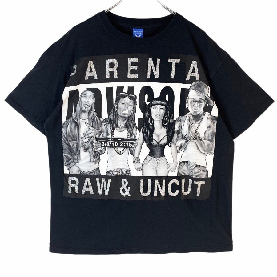 - Metal Jeans半袖TシャツヒップホップHIPHOPストリートラッパーラップ PARENTAL ADVISORY RAW&UNCUT黒ブラック白ホワイトvintage40621