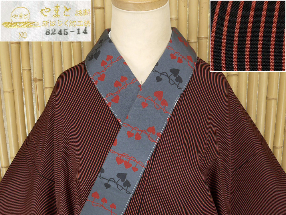 - 【京かんざし】y-119★お洒落衿 長襦袢 ストライプ 躾糸付未着用 「やまとゴールドラベル」身丈130 cm裄丈63 cm袖丈48.5 cm★即決送料無料
