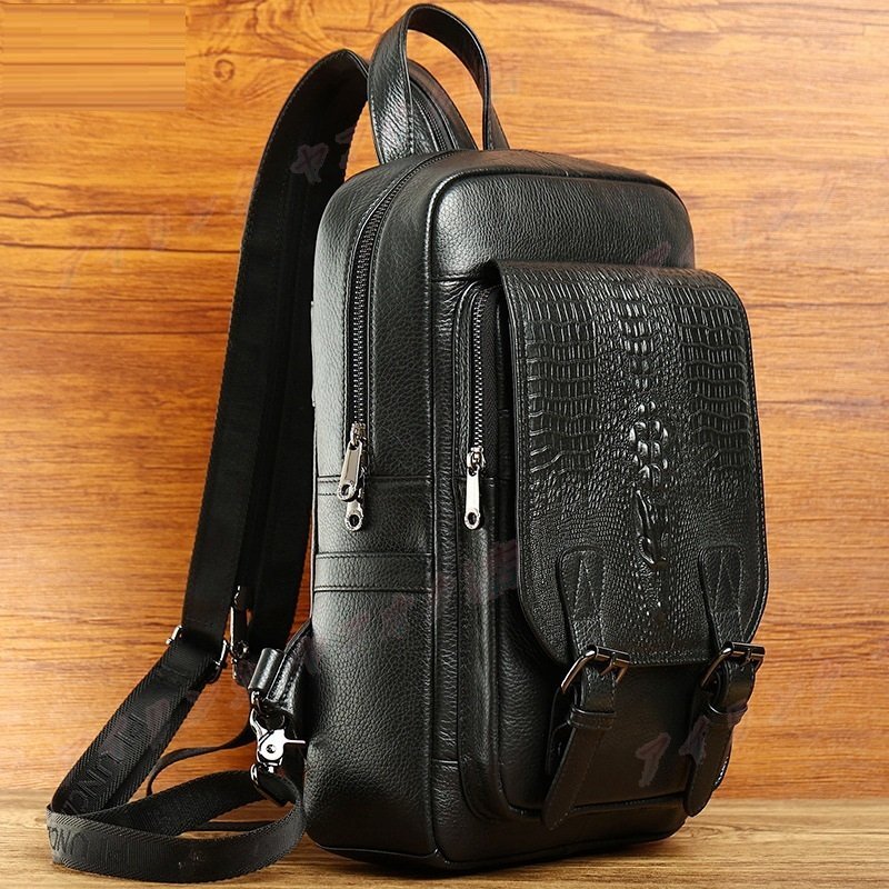 - ☆新品本革 牛革メンズ レザーバッグ クロコダイル型押し ボディーバッグ 2WAY バッグパック リュックサック 大容量多機能 黒 お色選択可