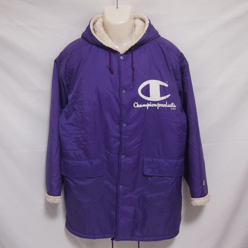 - 古着 メンズM Champion/チャンピオン 裏ボア ハーフコート 防寒 移動 観戦 バスケ カジュアル 普段着 パープル CJ-924