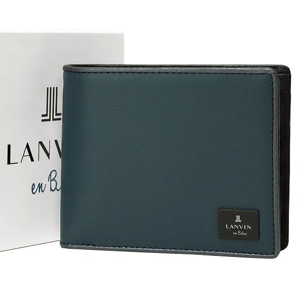 - 【送料無料】【本物】美品★LANVIN en Bleu★ランバンオンブルー★二つ折り財布★レザー★ブルー★メンズ★デイリーユース★コンパクト★革
