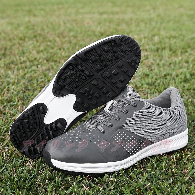 > ☆新品ゴルフシューズ メンズ スニーカー 強いグリップ スパイク靴 ソフトスパイク アウトドアフシューズ 防水 防滑 耐磨 グレー
