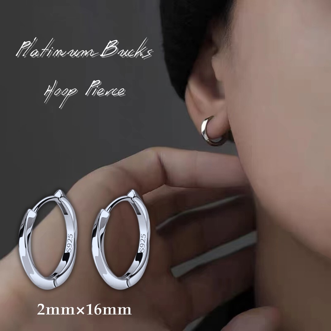 - (A) フープピアス シルバー 925 メンズ 小さめ 金属アレルギー対応 リング 両耳 レディース ピアス プラチナ コーティング 細め