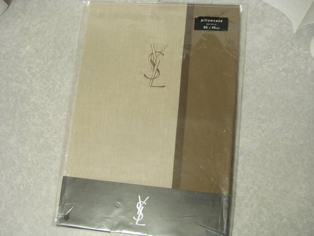 > ☆ イヴサンローラン ピローケース 65×45cm☆ こげ茶 ブラウン ベージュ YSLロゴ 枕カバー ピロケース
