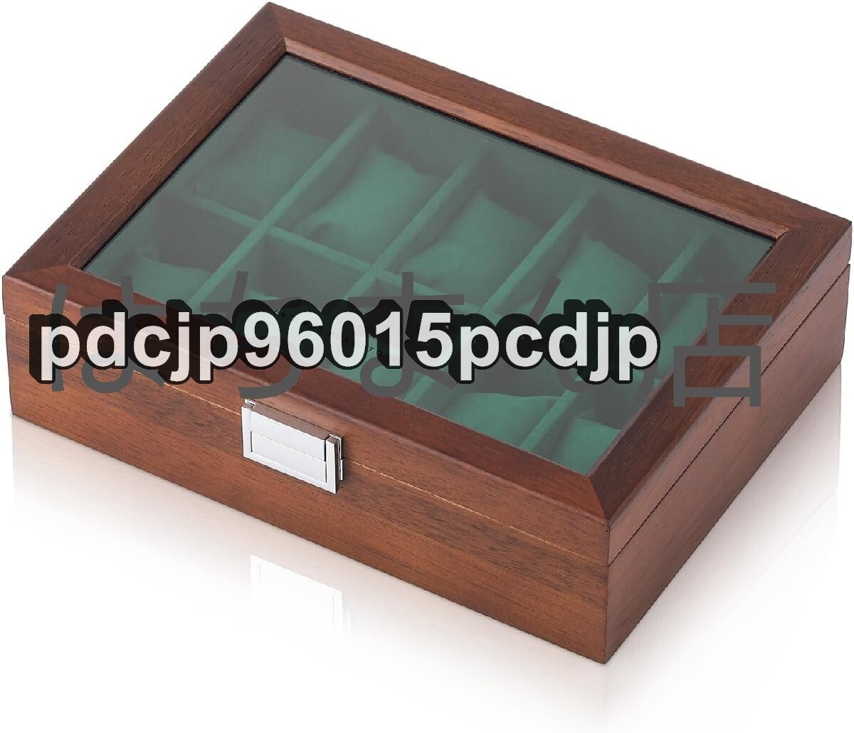 - 腕時計収納ケース コレクションケース 腕時計 収納ボックス ウォッチケース 10本用 木製 ロック付き モモタマナ材 無垢材 (グリーン)