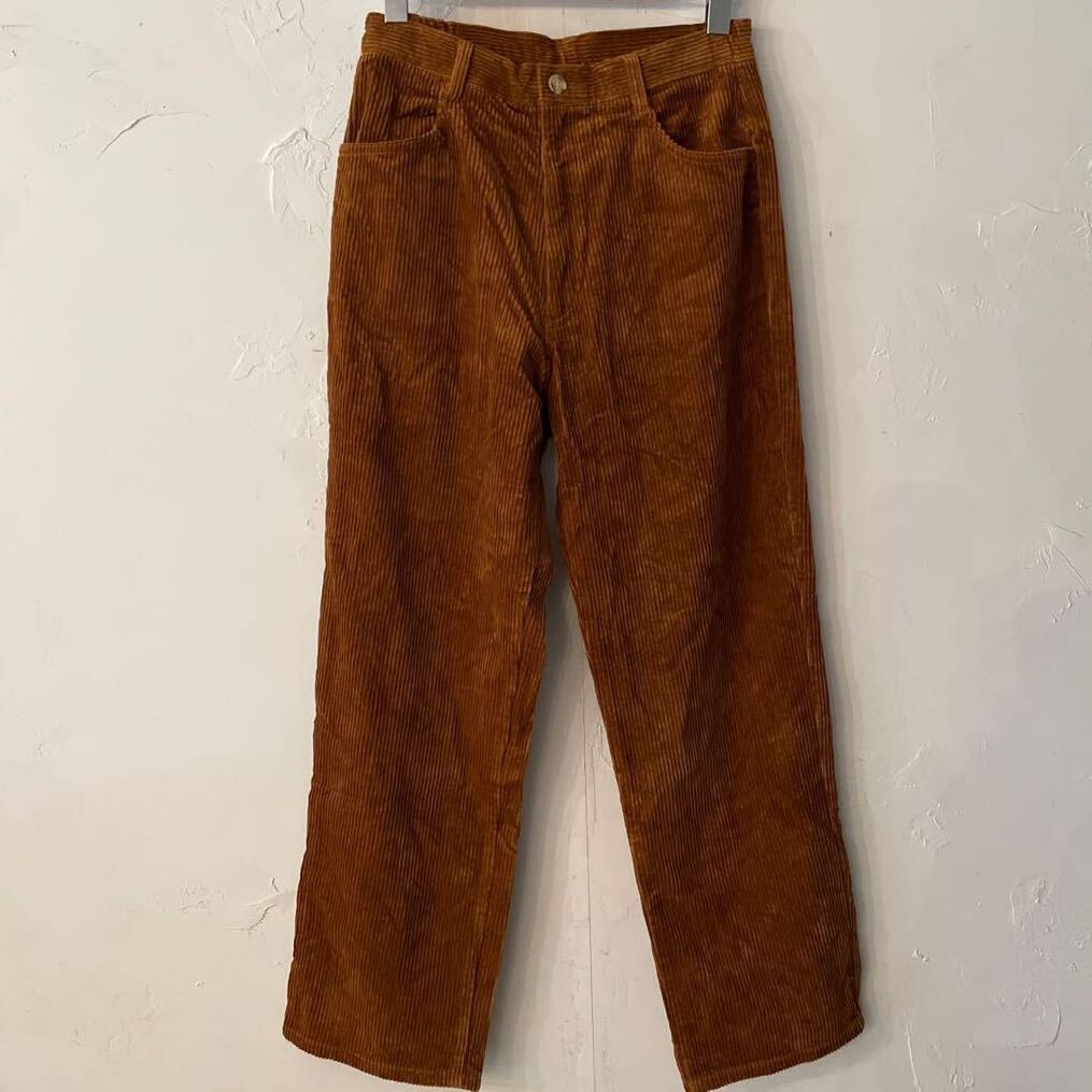 - ヴィンテージ 中太コーデュロイ ハイウエスト ワイド ストレートパンツ コットン100% キャメルブラウン 冬生地 厚手 W73cm. メンズ古着 4