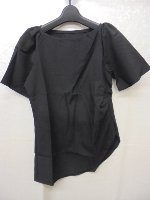 > 【KCM】□salon-f-4-L★タグなし・未使用品★レディース 半袖 プルオーバー ブラウス ブラック サイズ L サロン 制服 ユニフォーム